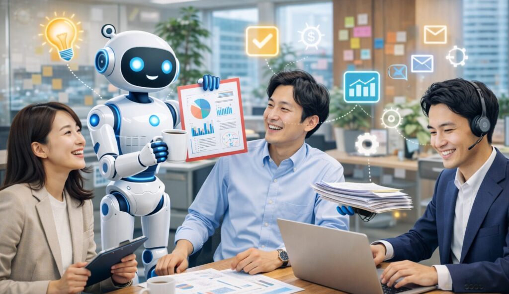 これらをAIに任せることで、社員は「答える仕事」から解放されます。